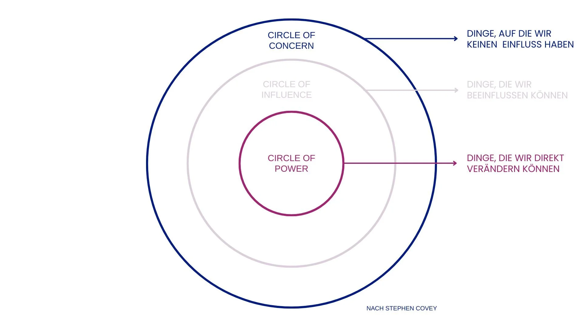 Hier kommt der Circle of Influence von Stephen R. Covey ins Spiel: Anstatt darauf zu warten, dass andere mit Wertschätzung beginnen, kann jeder selbst den ersten Schritt machen. Indem wir unser direktes Umfeld durch unser eigenen Verhalten positiv beeinflussen, können wir eine Kettenreaktion auslösen.